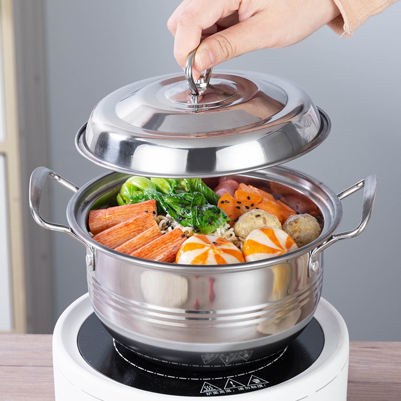 The SM-310 three-piece cookware set is made from durable 400 series stainless steel, designed for reliable everyday cooking. This set includes three different pot sizes, making it suitable for various cooking needs at home. With a clean and practical design, it is ideal for regular kitchen use.