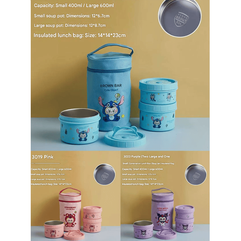 65.00 QAR304 Stainless Steel Lunch Box 3pcs Set with Bag 400ml + 400ml + 600ml