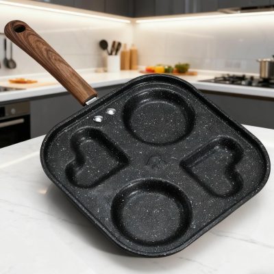 Iron 4 Hole Round and Heart Non-stick Frying Pan (Universal) – Black