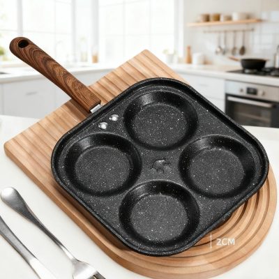 Iron 4 Hole Round Non-stick Frying Pan (Universal) – Black