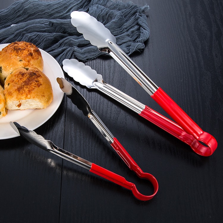 201 Stainless Steel Food Clip with PP Handle 3pcs Set – Red