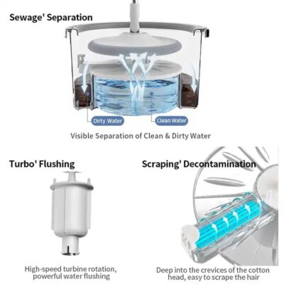 Introducing our innovative and efficient Rotating Mop and Bucket Set ? designed to simplify your cleaning routine and make it more effective. With a combination of high-speed steam turbine cleaning, telescopic design, and unique features, this cleaning set is a versatile solution for maintaining a spotless home.