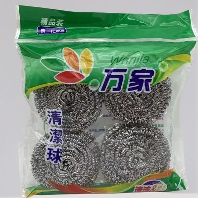 This 410 stainless steel scouring ball set is strong, long-lasting, and ideal for cleaning pots, pans, stoves, and kitchen surfaces. Each pack includes 4 pieces, made from high-quality 410 steel wire for effective scrubbing without damage.