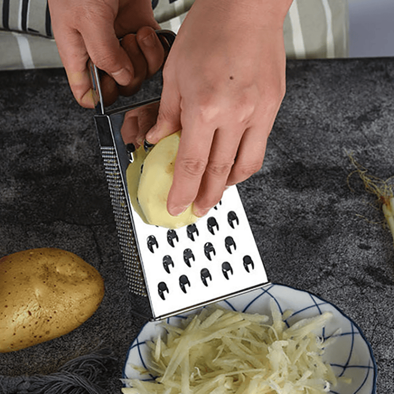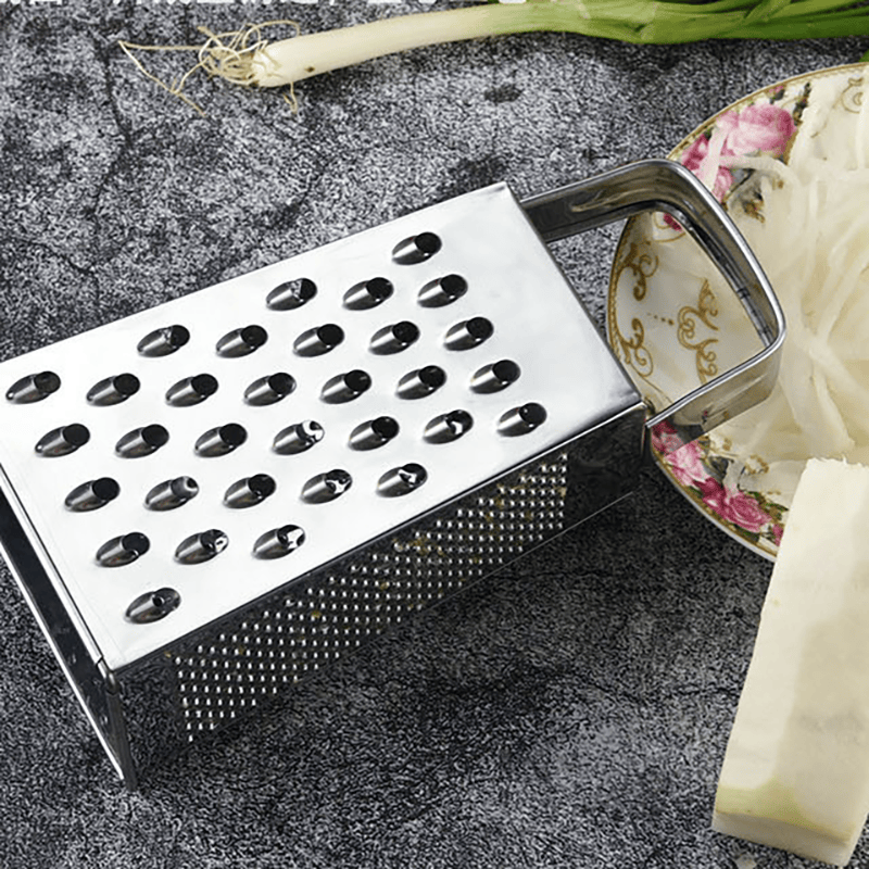 This 430 stainless steel 6-inch flat-handle grater is a strong and practical tool for everyday kitchen use. It comes with a 4-plane design that allows easy grating, slicing, and shredding. Made from durable 430 stainless steel and designed in a compact 6-inch size, it is easy to hold and clean.