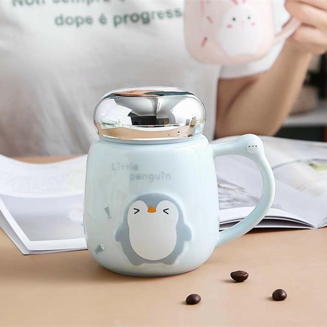 This ceramic cup (350ml) is a cute and practical choice for daily drinks. It comes in three designs: Little Rabbit, Little Penguin, and Little Kitty, each with a soft pastel color and a shiny lid for a clean look.