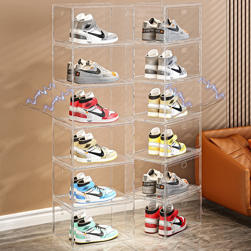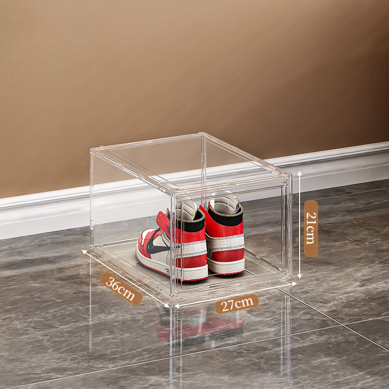 This front-opening transparent shoe box is designed for clean and easy shoe storage. Made from strong PP + PET material, it keeps shoes protected while letting you clearly see the contents. The front door opens smoothly, making it convenient to access your shoes without unstacking boxes.