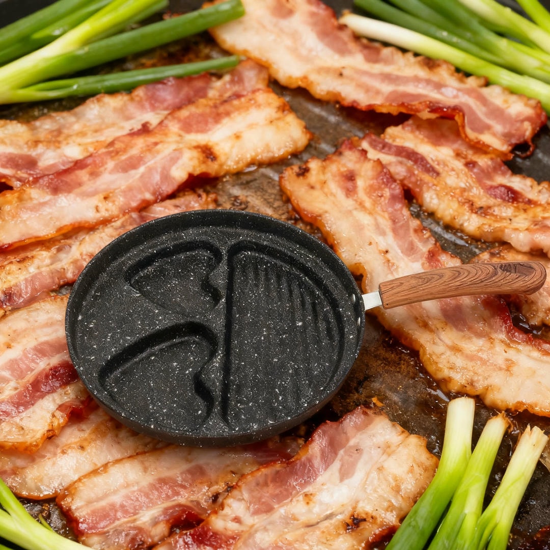 Iron 3 Hole Heart Non-stick Frying Pan (Universal) – Black
