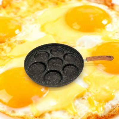 Iron 7 Hole Round Non-stick Frying Pan (Universal) – Black