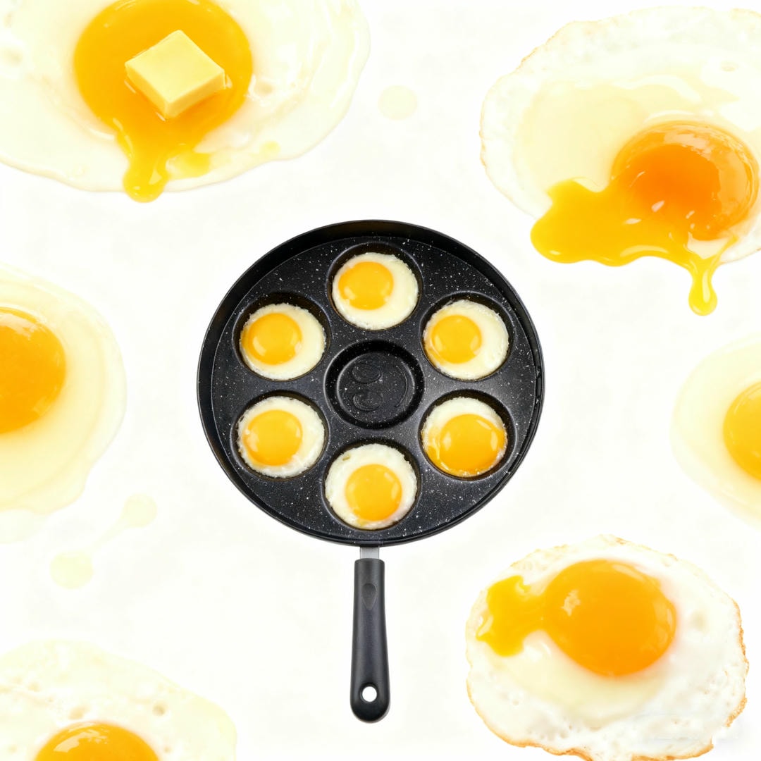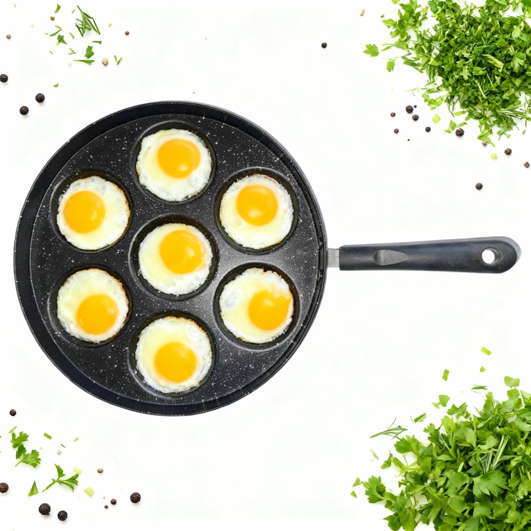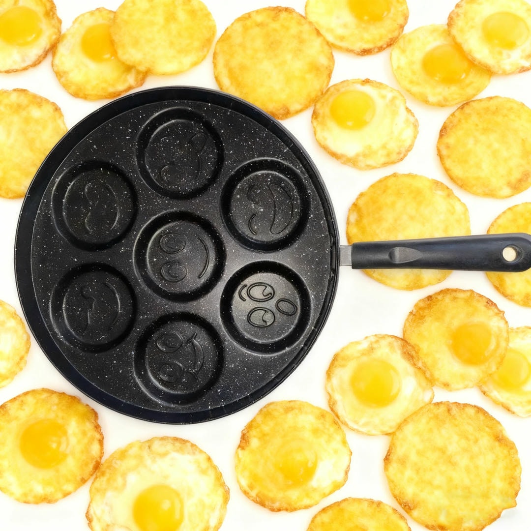 Iron Smiling 7 Hole Non-stick Frying Pan (Universal) – Black