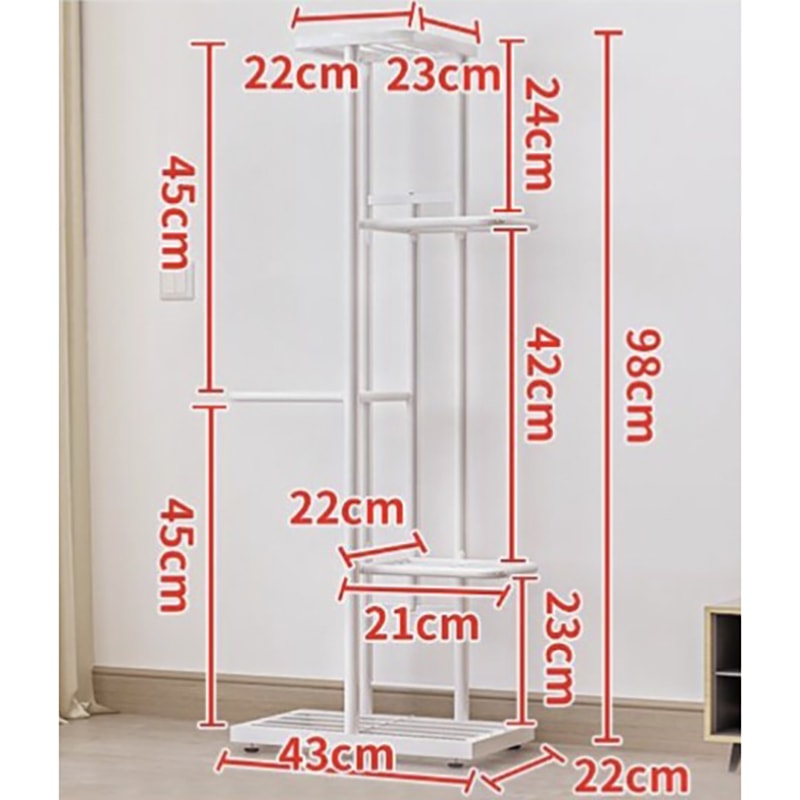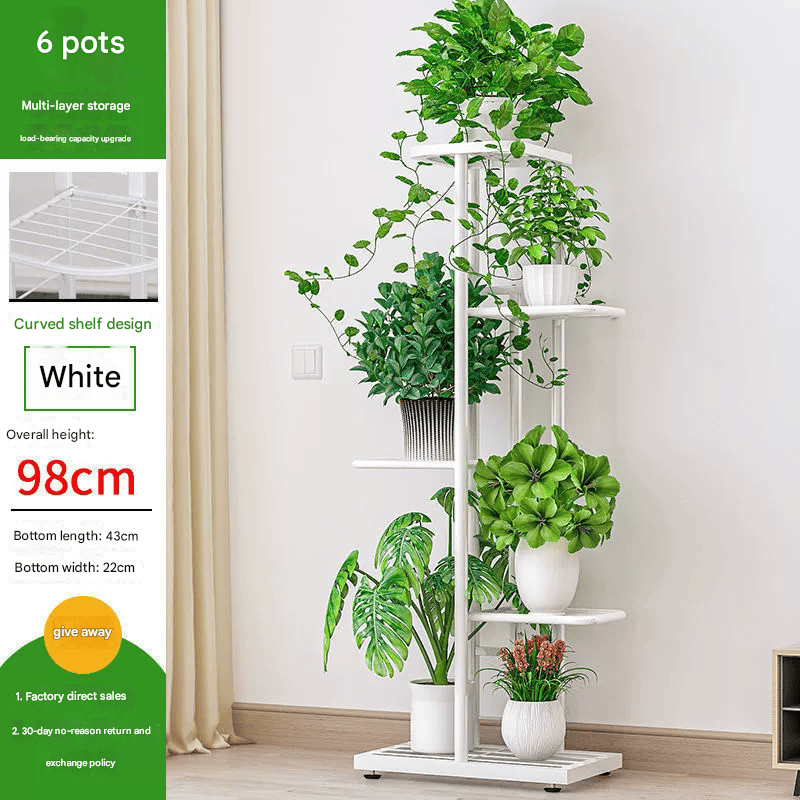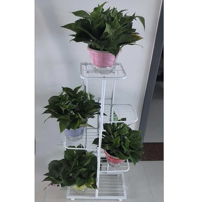 The Multi-layer Iron Flower Stand features a strong iron structure with 5 layers designed to hold up to 6 pots, making it ideal for organized plant display in homes or indoor spaces. Its vertical design helps save floor space while providing multi-level storage for plants. The stand measures 43×22×98 cm and is available in Black and White to suit different interior styles.