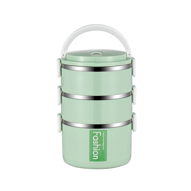 This three-layer lunch box is designed with a deep bottom to hold full meals comfortably while keeping them warm and fresh. The stainless steel interior provides safe food storage, and the strong plastic exterior adds durability for daily use. The practical size 16.5 ? 14.8 ? 23.5 cm makes it suitable for school, office, travel, and meal prep.